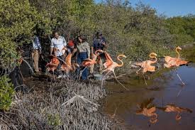 Doce flamencos del Caribe (Phoenicopterus ruber) fueron liberados en las Salinas de Baní, un área protegida que cuenta con condiciones seguras y abundante disponibilidad de alimento, además de albergar una población estable de esta especie.